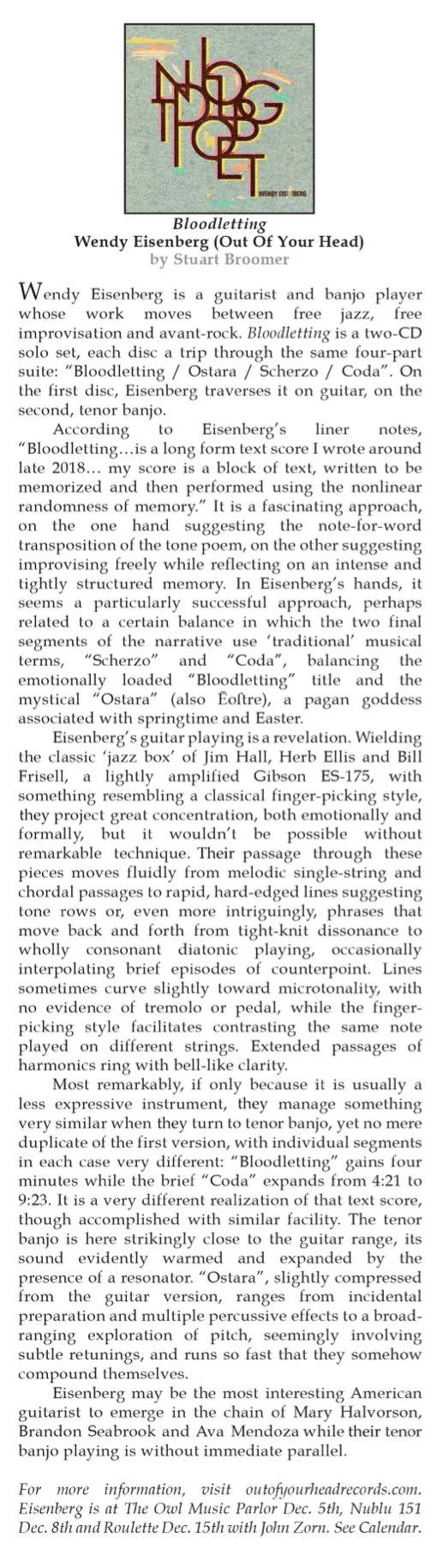 Two stellar reviews of recent OOYH Records releases in the December issue of the NYC Jazz Record.